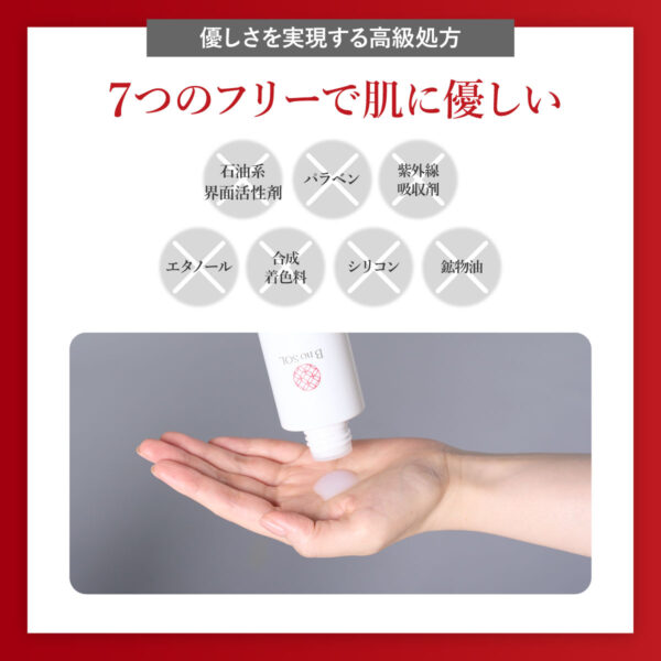石油系界面活性剤、パラベン、紫外線吸収剤、エタノール、合成着色料、シリコン、鉱物油
